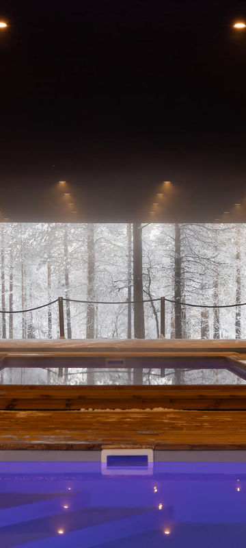 For those seeking the height of indulgence, the Signature Suite is an elegant sanctuary. With nearly 13 meters of towering windows, it feels as though you are sleeping beneath the stars within Lapland’s untouched wilderness. A spacious bathroom with a jacuzzi for 2 and an additional private bathroom add to the sense of luxury, making this suite a truly extraordinary retreat.