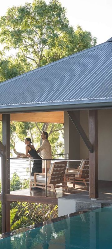 Set amongst native Eucalyptus, each guest pavilion has been handcrafted from timber and stone, and decorated with original artwork and furnishings that reflect the natural setting of the island. The spacious, one-bedroom pavilions provide an indulgent space in which to relax and unwind, with either a sundeck or private infinity edge plunge pool. For those ready to splurge, the uncompromising luxury and privacy of the Beach House with its own guest pavilion, private full-size pool and breathtaking views are second to none.