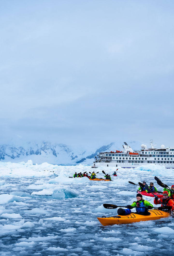 Other innovative features of the ship include two unique hydraulic observation platforms, which fold out for unobstructed views. There are four sea-level Zodiac launching platforms, designed for speedy embarkation to help maximise time ashore. And a separate activity launch platform has been carefully designed to provide plenty of space for kayakers, divers, skiers and climbers to prepare equipment and make their way off the ship.
