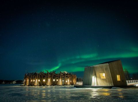 Like Treehotel, Arctic Bath is away from the artificial lights of Harad’s village and the river’s edge offers a great spot to gaze at the aurora. You might even be treated to the northern lights dancing overhead while taking a bracing dip!