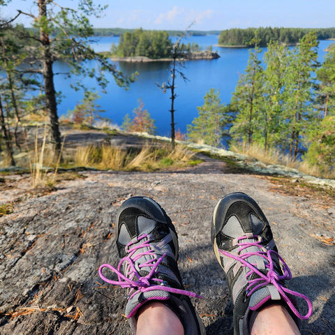 Other activities crept into our escape. An afternoon cruise into Linnansaari National Park with time to explore nature trails on a small uninhabited island. Sadly no sign of the Saimaa seal. Electric mountain biking on the hillside trails around Järvisydän. Walking meandering nature trails on the Puumala archipelago near Sahanlahti. A tour around Olavinlinna castle as we detoured to Savonlinna between resorts. An unexpectedly delightful afternoon tea at the Tea House of Wehmais. All were great fun, but when I reflect on this trip, I’ll always come back to the lake swims and saunas and that incredibly relaxed feeling that followed.