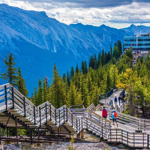A must-do is riding the Banff Gondola up Sulphur Mountain. From the lofty summit that sits over 2200m above sea level, stroll along the boardwalk and take in imperious views of the Rockies across Bow Valley and six mountain ranges. If you can drag yourself away from the breathtaking vistas you can explore the Interpretive Centre, multi-sensory theatre, and grab a snack or something more substantial from the choice of mountaintop dining options.