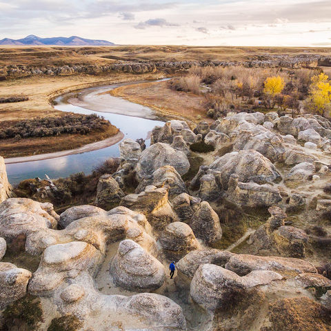 Take time to wander through the hoodoo trails and find a spot to relax alongside the meandering Milk River.