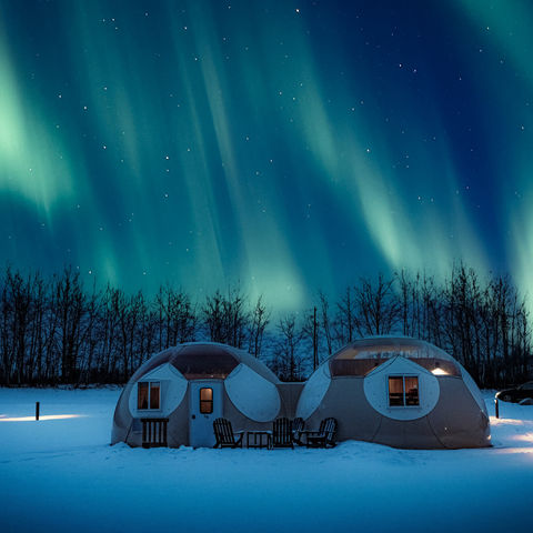 Sample authentic local cuisine, encounter bison, elk and Percheron draft horses and enjoy vast skies that in autumn and winter may come alive with the colours of the aurora. Special Sky Watching Domes with transparent panoramic ceilings provide cosy comfort for gazing at nature’s light with zero light pollution.