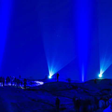 The annual Island of Light festival brings together innovative light installations dotted around the island. Coloured lights and artistic projections beam onto the granite rock to create a luminous spectacle along the coastline.