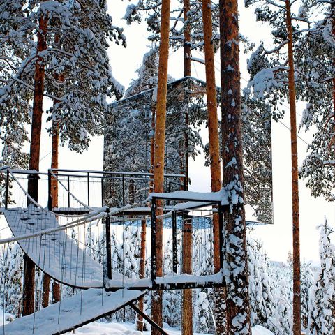 Keeping with the theme of unique retreats, about an hour inland from coastal Lapland, connecting with nature takes on new heights… literally! The intriguing Treehotel is a thrilling hideaway of eight grown-up treehouses. Each is unique and offers uninterrupted views of the treetops and Lulea River Valley. Your potential room for the night might be a giant bird’s nest, an otherworldly UFO or a discreet Mirror Cube. There’s a host of thrilling winter activities available too. Naturally.