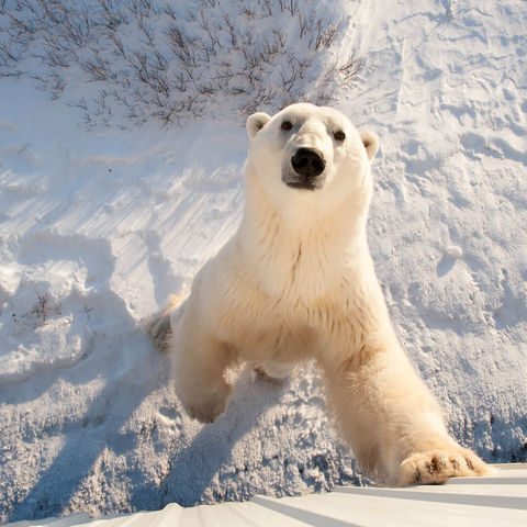 Purpose built for watching polar bears on the tundra, Polar Rovers combine comfort and space with practicality to ensure the best possible encounters with these magnificent mammals. Giant tyres and a raised open-air viewing platform allow you to come within inches of this powerful predator safely.