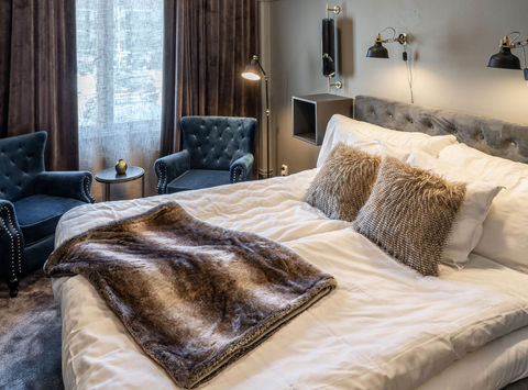 Sweden HotelLocated in the charming town of Overkalix about an hour and a half from Lulea, this hotel offers 60 spacious en suite rooms in the main building, some with a private balcony for aurora watching and simple cabins a short walk from the hotel. There are also two suites complete with private sauna.