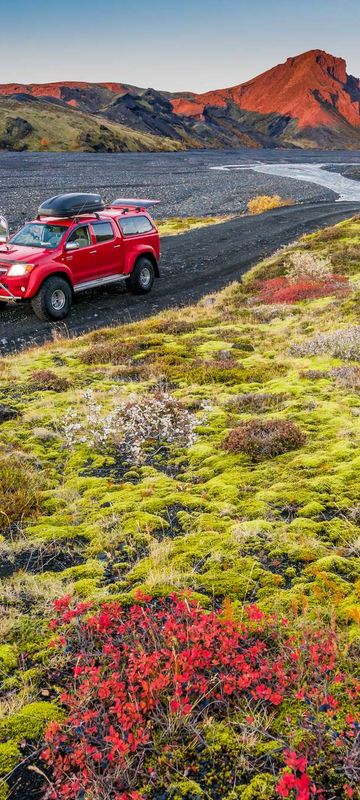 Venture into the picturesque valley of Thorsmork which is surrounded on three sides by glaciers and criss-crossed by raging rivers and gentle streams. Named for the Viking God of thunder, Thor, your expert guide/driving will navigate along this beautiful, if rugged track, showing off his unique skill.