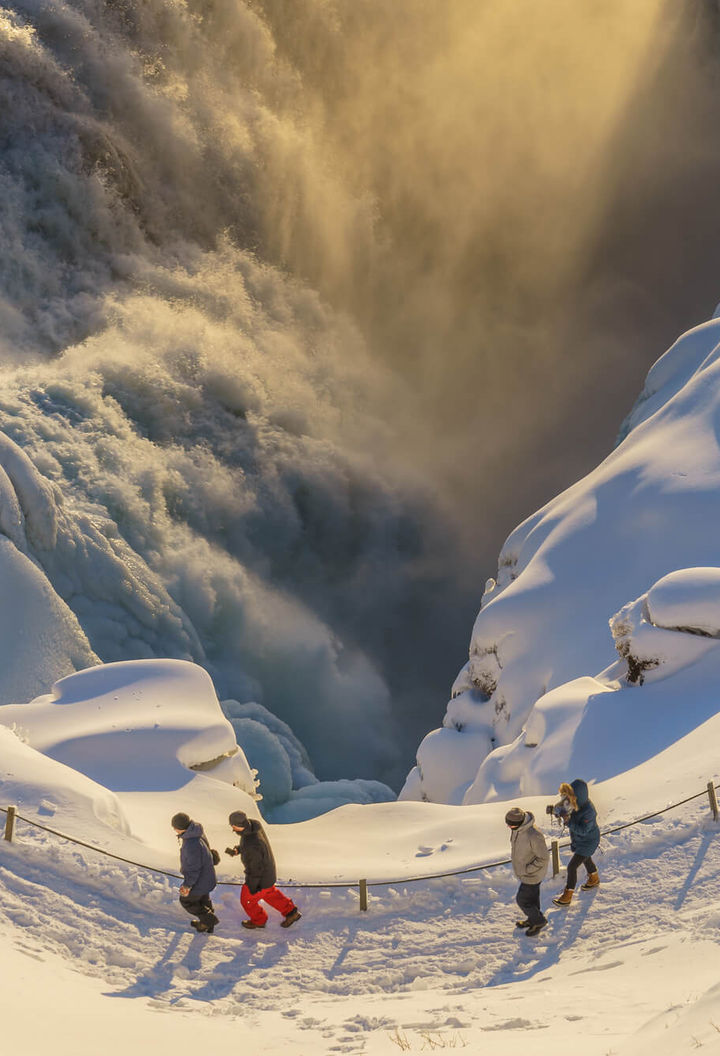 Iceland’s famous trio of landmarks – Thingvellir, Gullfoss and Geysir – are easily combined in an unforgettable day touring the Golden Circle. At Thingvellir you can stroll along the Mid-Atlantic Ridge and visit Iceland’s ancient parliament. The 32m-high, twin-tiered waterfall of Gullfoss pours into a narrow gorge, while Strokkur erupts like a steaming exclamation mark at the geothermal site of Geysir.