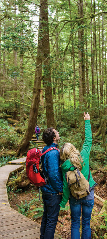 Depart early and drive along the Malahat Highway, enjoying sweeping views of the Southern Gulf Islands. Stop first at the Malahat SkyWalk, Vancouver Island’s newest outdoor attraction, where a 600-metre elevated walkway winds through a lush Arbutus and Douglas Fir forest. Climb the 10-storey spiral tower for stunning 360-degree views of islands, inlets, fjords, forests, and distant mountains. Continue to Duncan for a brief tour of the City of Totems and some free time for lunch. Arrive in Tofino in the evening