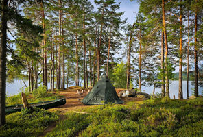 This morning take a trip on Lake Grasmangen by raft with an electric motor or canoe and spend the night in a tepee tent on an island in the lake. On arrival at the Island enjoy the peace or swim in the lake (which is 33 meters deep). A guide will deliver ingredients for your evening meal which you prepare on the campfire.
