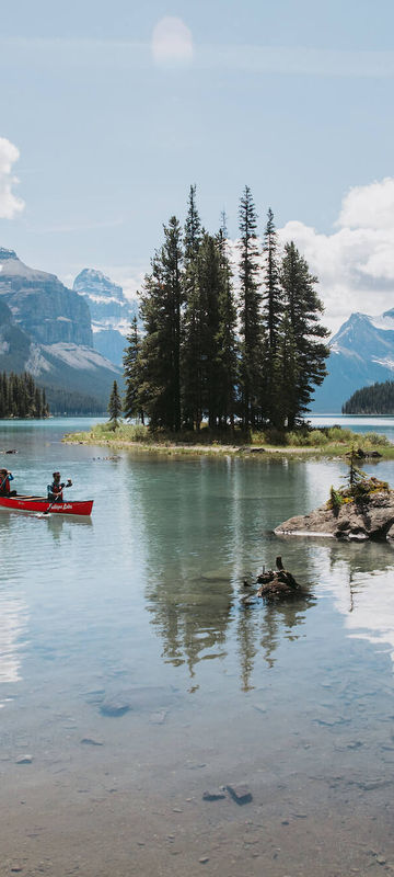 Explore Maligne Canyon, where scenic bridges and trails reveal cascading waterfalls, ancient fossils, and striking rock formations. Visit Maligne Lake, famed for its brilliant azure waters, surrounding peaks, and views of three glaciers. Take in the beauty of Spirit Island from the shore or join an optional boat cruise to the island (additional cost). In the afternoon, enjoy free time in Jasper or an optional activity such as a guided food tour in town or an evening wildlife-viewing excursion (additional cost).